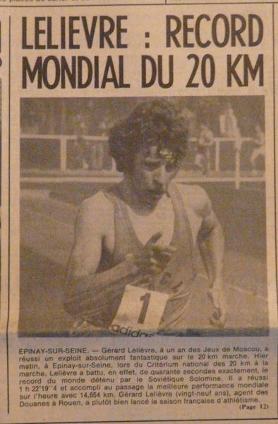 Gérard Lelièvre a été, dans les années 70-80, le meilleur marcheur français : il a collectionné les titres et les records nationaux sur l'heure, les 20 km (piste / route), les 50 km (piste / route) et dans les épreuves de fond de 100 km.
